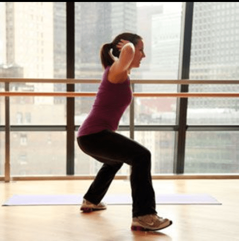 1. Stand and create a gap between your feet, your toes should be facing out and your knees bent.